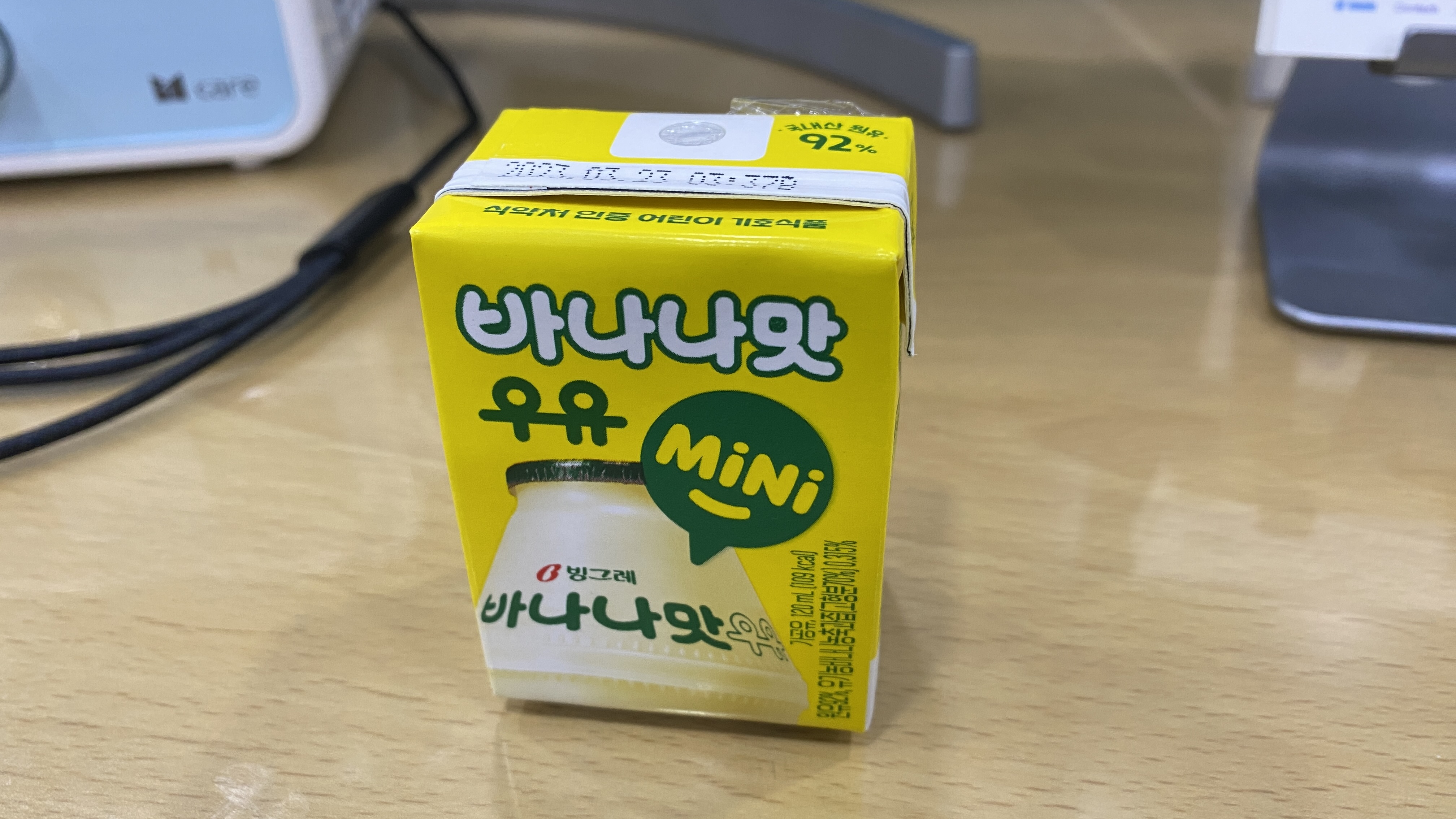 원래 동그랗게 생긴걸 자주 먹었는데 이렇게 작은 바나나맛우유가 생겼다. 120ml 한모금 양.
